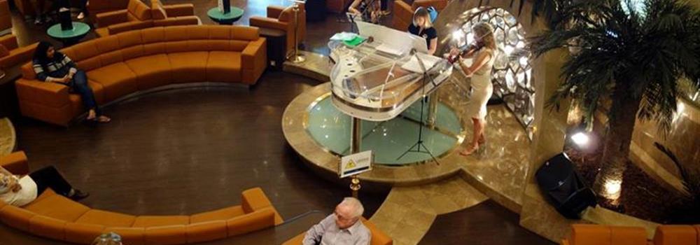 - 客舱内有两张单人床可转换为一张双人床,宽敞的衣柜,带淋浴的浴室,和一张书桌。每个客舱还设有电视,恒温控制空调,迷你酒吧,个人保险箱,提供互联网连接和直拨电话。