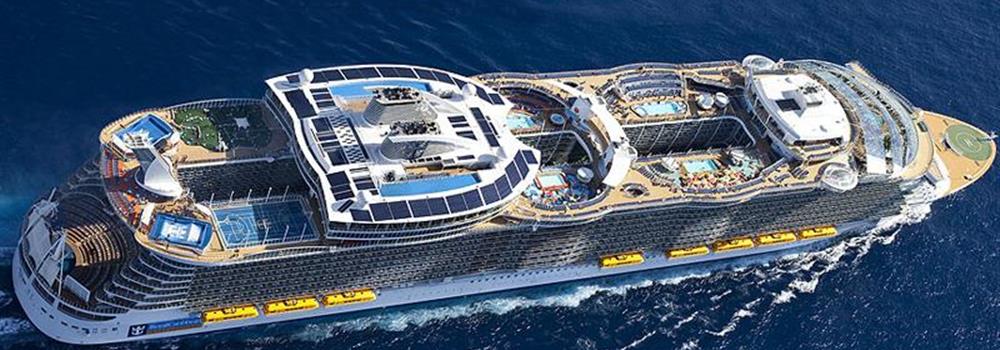 海洋绿洲号邮轮将成为世界上最大的超级邮轮,要比当年的泰坦尼克号还要大五倍,当年的泰坦尼克号邮轮,全长约269米,宽47米,有11层楼高,重4.6万吨,造价共花费7500万英镑。1912年4月首航时,搭载乘客2224人。在上世纪初,这样大的邮轮,也就难怪建造者为它取名泰坦尼克。但是和今天的海洋绿洲号邮轮相比,泰坦尼克简直就是小巫见大巫了。仅从吨位上讲,海洋绿洲号邮轮就是泰坦尼克号的5倍多,而它的长度和高度也是“泰坦尼克”望尘莫及的。