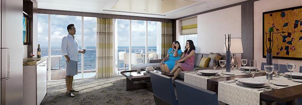 - 客舱内有两张单人床可转换为一张大床,有带淋浴的私人浴室。梳妆区,沙发休息区,落地式高清屏幕虚拟阳台,提供海洋和目的地的实时视图。客舱还包括互动式平面电视,迷你保险箱,收音机,电话和吹风机。