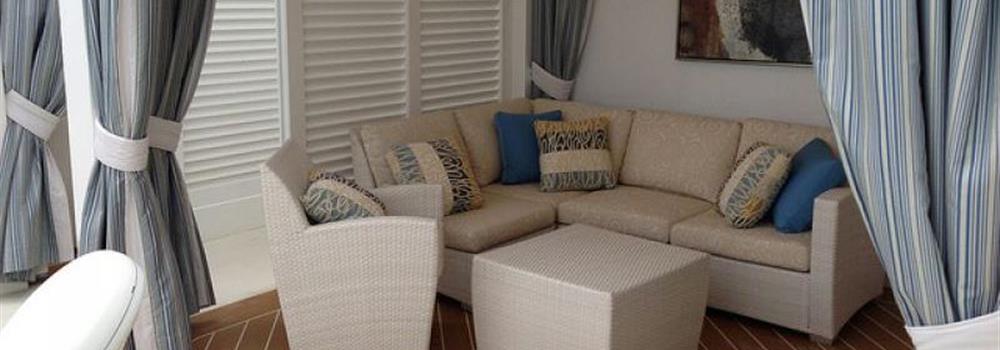 - 阳台舱面积为222平方英尺(21平方米),宽敞舒适,精美奢华,内部设施一应俱全。41平方英尺(4平方米)的私人阳台更为您带来独享的私人空间,让您在舱房内尽情领略迷人海景。